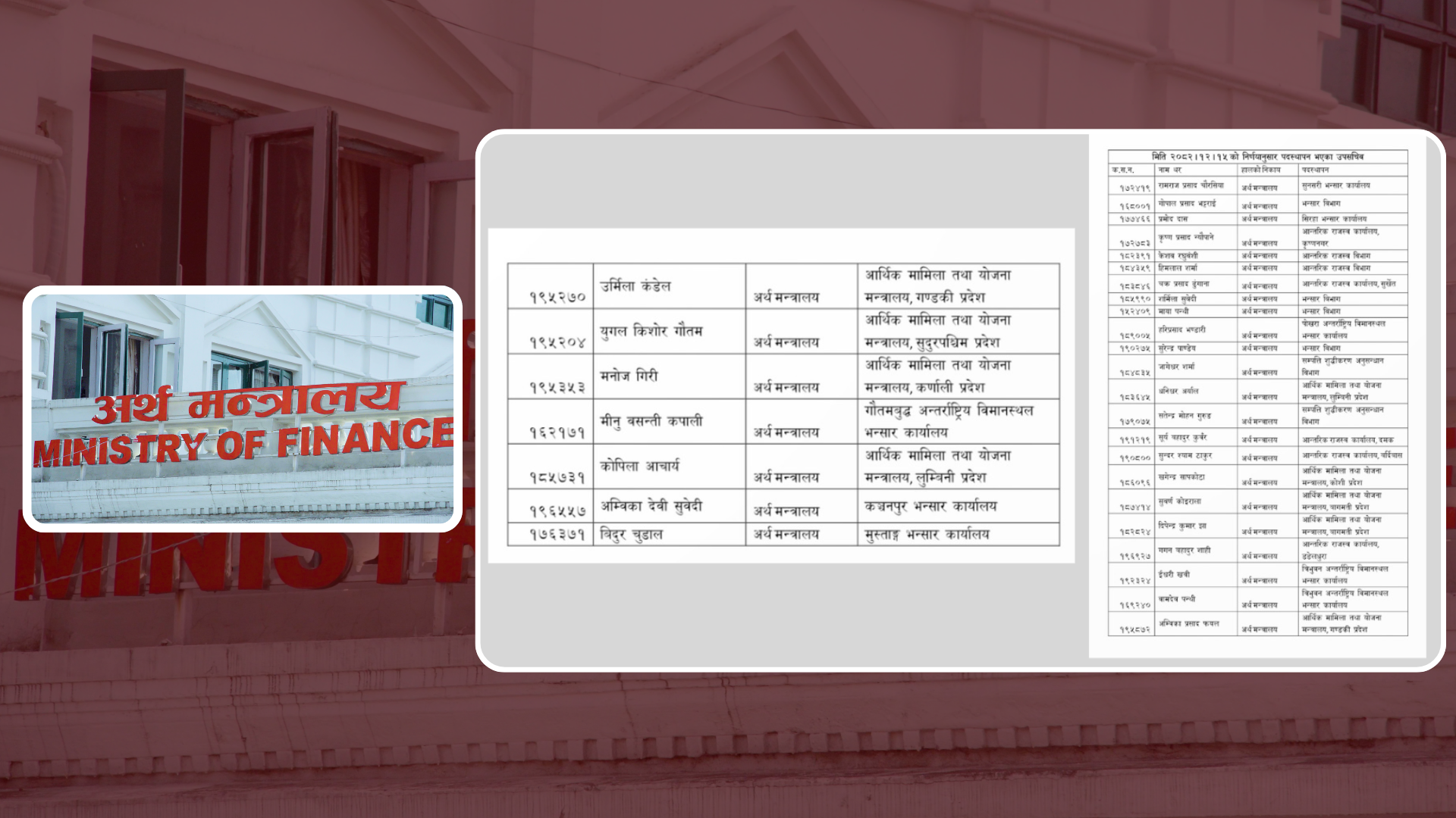 काठमाडौं । अर्थ मन्त्रालयले पहिलोपटक रास्वपाको नीतिअनुसार मेरिटमा आधारित सरुवा तथा पदस्थापन गरेको छ । अर्थमन्त्री डा.स्वर्णिम वाग्लेले १५ गतेको मन्त्रिस्तरीय निर्णयबाट अर्थ मन्त्रालयका ३० जना उपसचिवको एकैपटक पदस्थापन तथा सरुवा गरेका हुन् । मेरिटअनुसार पहिलो हुनेले पहिले पोष्टिङ छान्ने, दोस्रोले बाँकी २९ मध्येको ठाउँ छान्ने, दोस्रो हुनेले बाँकी २९ ठाउँ मध्ये एक रोज्ने र मेरिटमा तेस्रो हुनेले बाँकी रहेको २८ बाट छान्ने विधिअनुसार यो बढुवापछिको पदस्थापन भएको मन्त्रालयले जनाएको छ ।